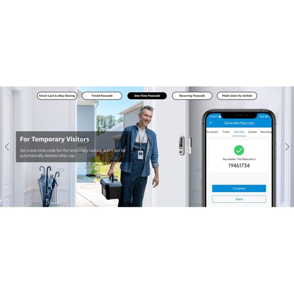 Special Feature : Smart Lock with Fingerprint, Voice Control, Compatible with Amazon Alexa & Google Assistant, App Control, Remote Control, Work with iWatch, Manage User, Remote eKey Sharing, Anti-peeping Touchscreen Keypad, Event History